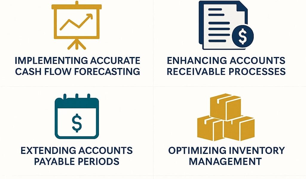 Reducing excess inventory frees up cash tied in unsold goods. Implementing just-in-time inventory systems and regularly reviewing stock levels can enhance cash flow.